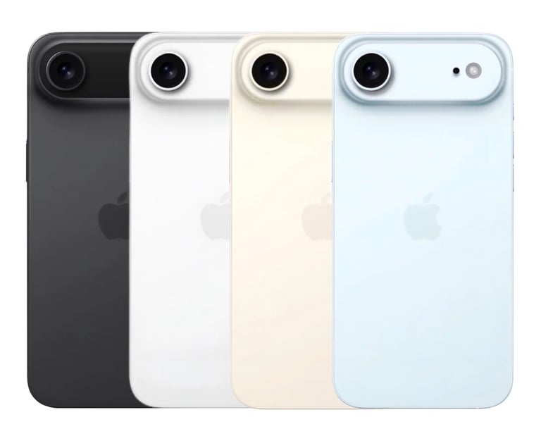 L'iPhone 17 Air (ou 17R) est un modèle ultra-fin (env. 5,6 mm) attendu pour 2025, positionné entre le modèle standard et la gamme Pro. Il se caractérise par un châssis en titane, un écran de 6,5 pouces à 120 Hz (ProMotion), la puce A19 Pro et un unique capteur photo puissant de 48 MP.